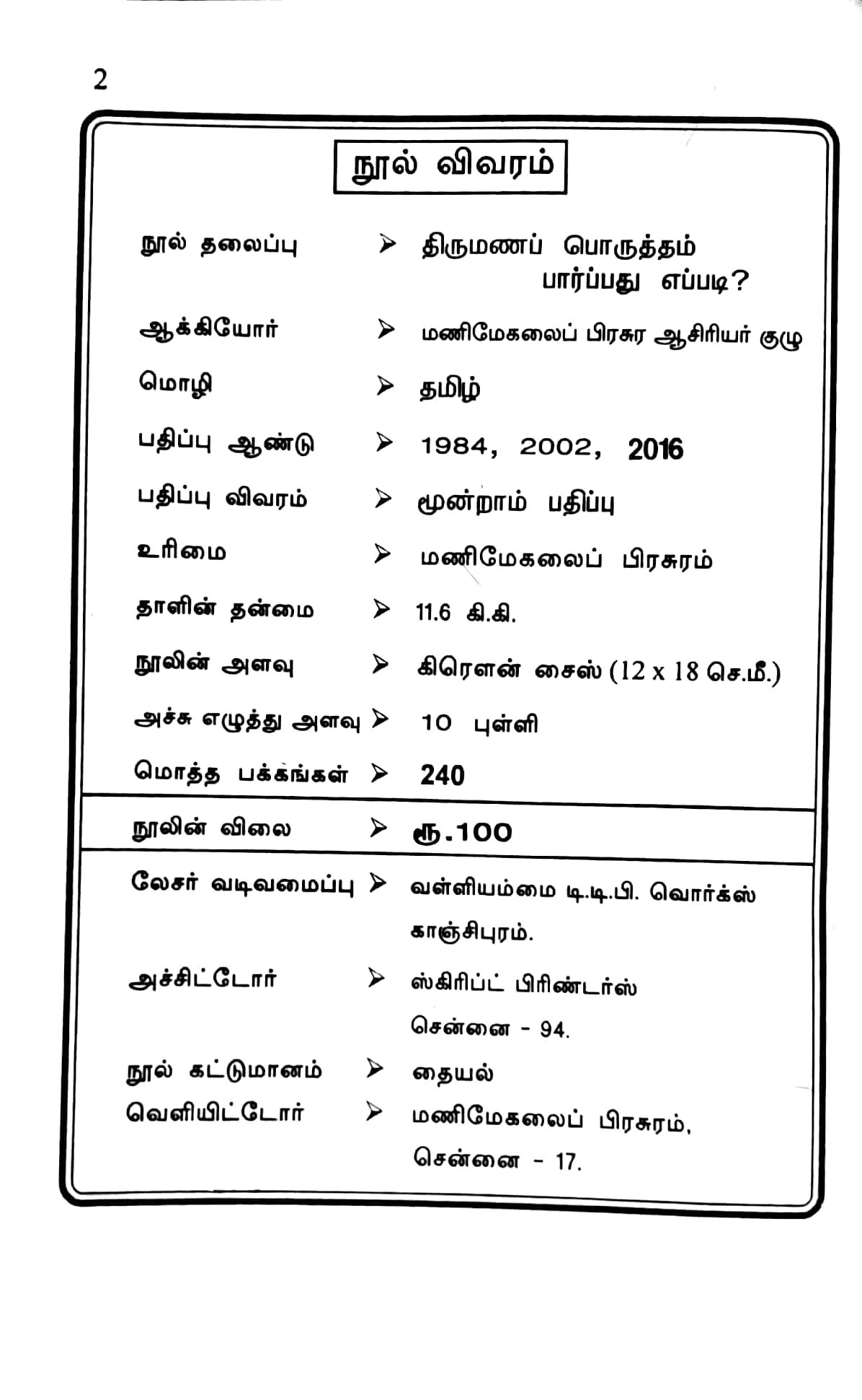 Jathaka porutham, Tamil horoscope compatibility for marriage Horoscope matching for marriage In Tamil language, is known as thirumana porutham, jathagam porutham, jodi porutham, kalyana porutham, vivaha porutham, kurippu parthal, kundali matching and manaporutham. Tamil astrology recommends that astrology chart compatibility is the best recommended marriage matching method.